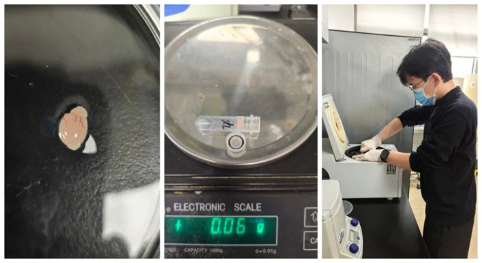 實(shí)驗(yàn)開始時(shí),我們?nèi)〕?.06mg的小鼠睪丸組織,剪碎后加入磁珠和1mL解離酶,隨后將試管放入提前預(yù)熱好的儀器中,選擇對(duì)應(yīng)組織的專用程序——按下啟動(dòng)鍵,儀器就進(jìn)入自動(dòng)工作模式。