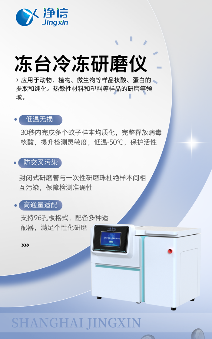凈信凍臺(tái)冷凍研磨儀以標(biāo)準(zhǔn)化、自動(dòng)化的研磨方案,助力疾控中心構(gòu)建更快速的蚊媒病毒響應(yīng)體系。它不僅解放了實(shí)驗(yàn)室人力,更通過提升樣本處理質(zhì)量,為流行病學(xué)研判提供可靠技術(shù)支撐,默默守護(hù)著公共衛(wèi)生安全的第一道防線。