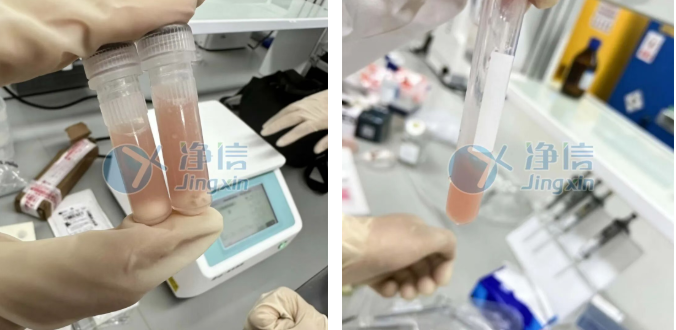 8、客戶要求未裂紅,加入500ulPBS+1ml碎片去除劑,離心后棄上清,然后洗細(xì)胞兩次。