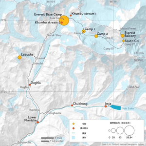 報(bào)道稱,“污染嚴(yán)重的樣本來(lái)自位于尼泊爾境內(nèi)的珠峰大本營(yíng),那里是珠峰上人類活動(dòng)較集中的地方。每公升積雪含有79個(gè)微粒。取樣地點(diǎn)位于海拔8440米處,即位于珠峰峰頂下方408米處,該樣本中每公升積雪含有12個(gè)塑料微粒。在珠穆朗瑪峰上發(fā)現(xiàn)的微塑料大都源自合成纖維,包括聚酯纖維和丙烯酸纖維,系制作登山者衣服和裝備所用的材料。”