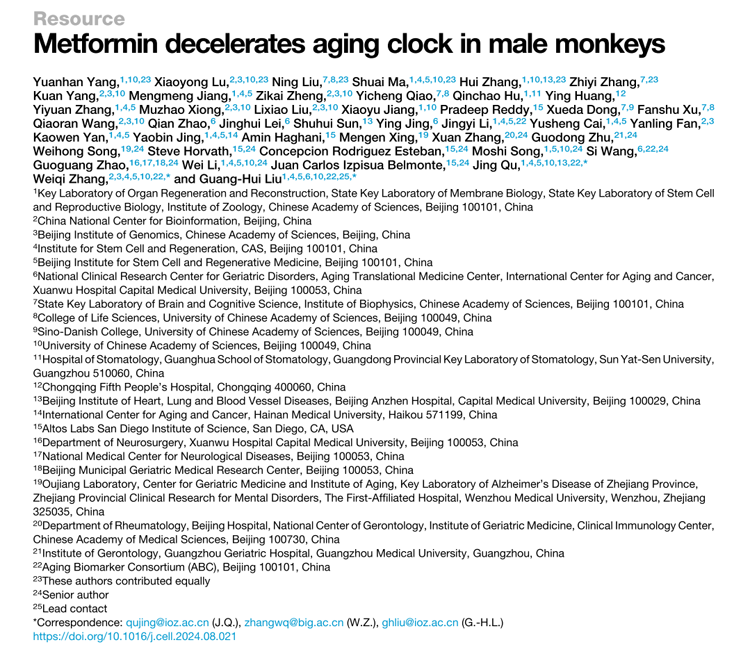 隨著全球人口老齡化的加劇,衰老及其相關(guān)疾病的防治成為亟待解決的重大科學(xué)問題。二甲雙胍作為一種經(jīng)典的降糖藥物,近年來被發(fā)現(xiàn)具有顯著的抗衰老效果。然而,其具體作用機(jī)制尚不明確。為了深入研究二甲雙胍對(duì)靈長類動(dòng)物衰老的影響,劉光慧團(tuán)隊(duì)展開了長達(dá)8年的研究。