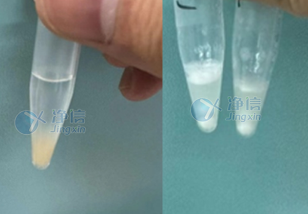 從研磨對比圖中,可清晰的看到蜱蟲被充分研磨,后續(xù)進(jìn)行離心,離心后分為三層,上層為水相,下層為有機相,中層是我們要提取的蛋白質(zhì)。