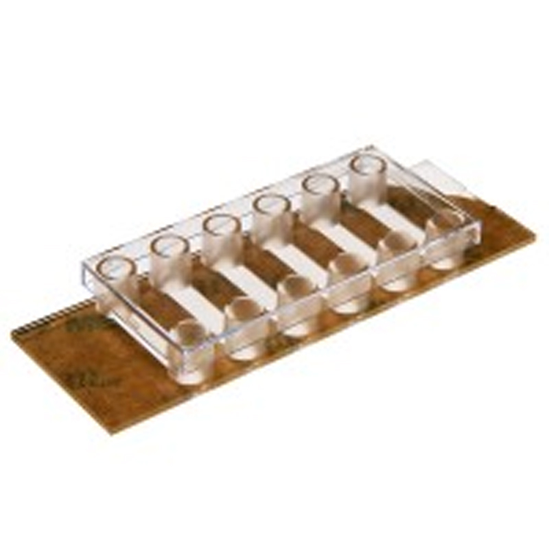 無底6通道載玻片用于細(xì)胞培養(yǎng),帶有自黏底部,從而可以粘上底物